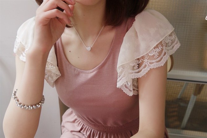 的全棉料 。袖子兩層哦一層花邊一層雪紡 很大方的款式 顏色很襯膚色呢