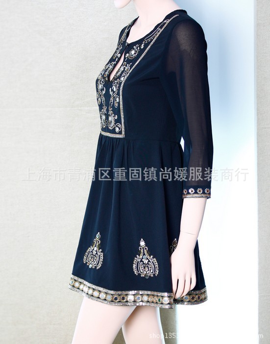 2013夏新款韓版嗆口小辣椒free people民族風(fēng)刺繡釘珠雪紡連衣裙