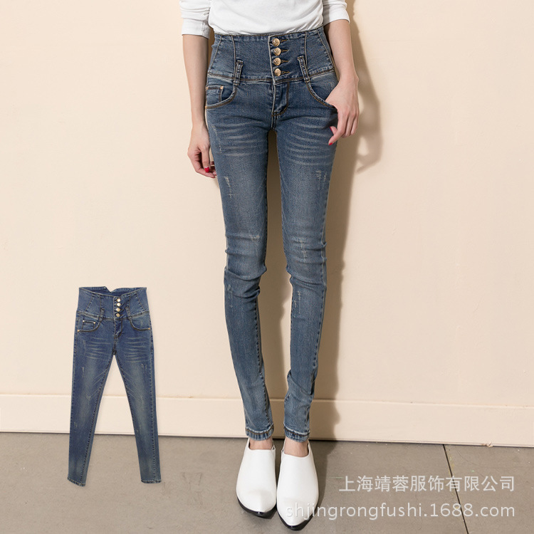 【EF13956】高腰四釦窄管牛仔長(zhǎng)褲