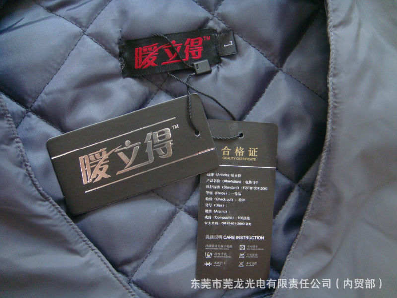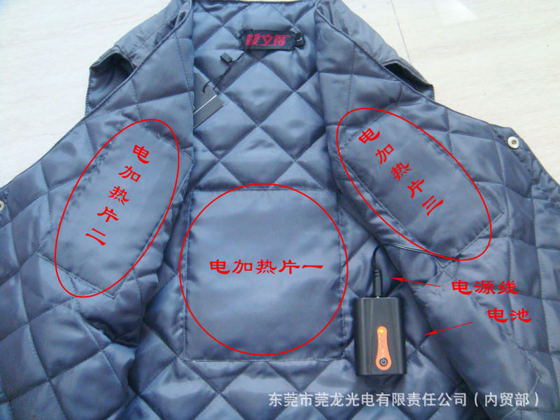 保暖保[jian]:產品是目前國內外新一代的保暖保[jian]產品,獲得國家專利,.通過充電電池使衣服發(fā)熱,采用能釋放遠紅外線的碳纖維電熱片作為發(fā)熱體. 低壓設計,決不會產生對人體有害的電磁波,發(fā)熱體柔軟性在折疊或彎曲都不會受損,不但能主動加熱增溫,充分營造人體溫暖舒適、透氣吸濕的感受,而且有良好的熱療保[jian]效應,又不影響服飾的性能和外觀,