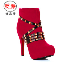 成都靴子廠家直銷 2014秋冬新款超高跟短靴女靴 專柜正品鞋子代理銷量4644