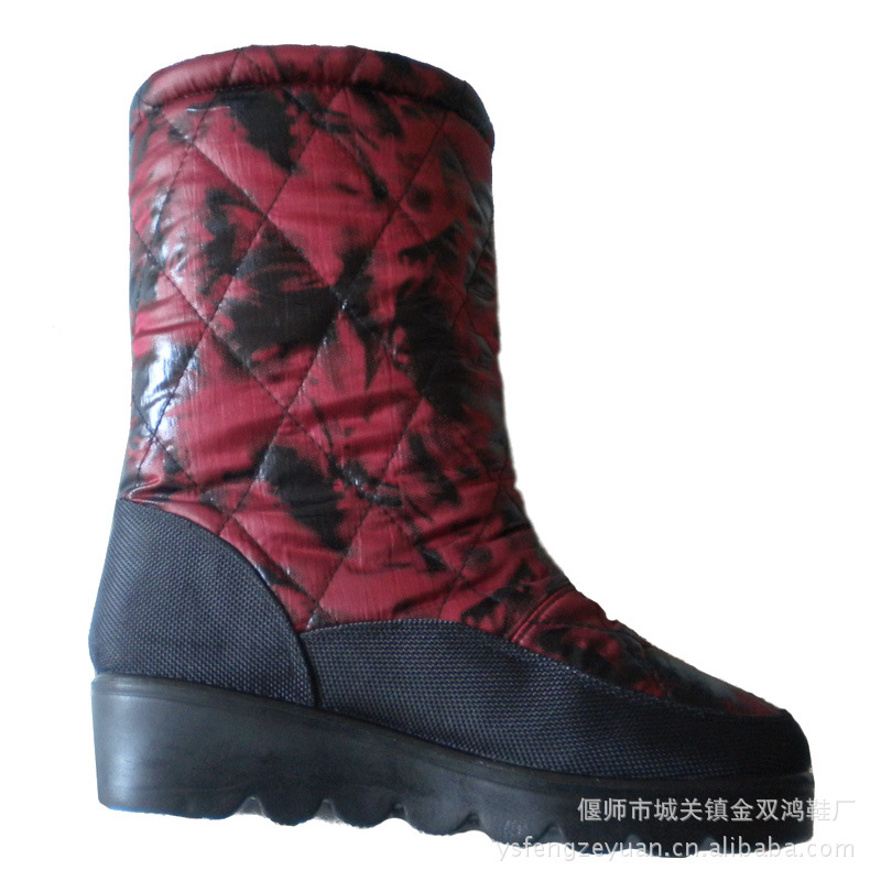 女士加絨加厚坡跟棉靴批發(fā) 供應(yīng)長(zhǎng)筒靴 棉靴 加厚保暖靴 中筒靴
