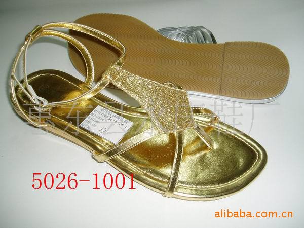 供應(yīng)新款平底涼鞋、人字拖、拖鞋 、亮片 金 銀兩色