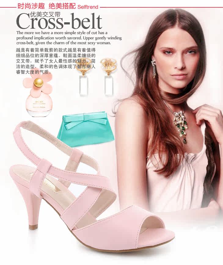 2012女式鞋新品 簡約OL氣質(zhì)高跟鞋交叉編帶中高跟涼鞋子 促銷特價(jià)