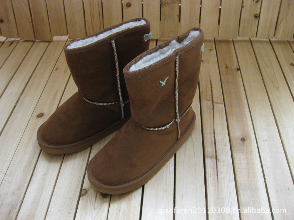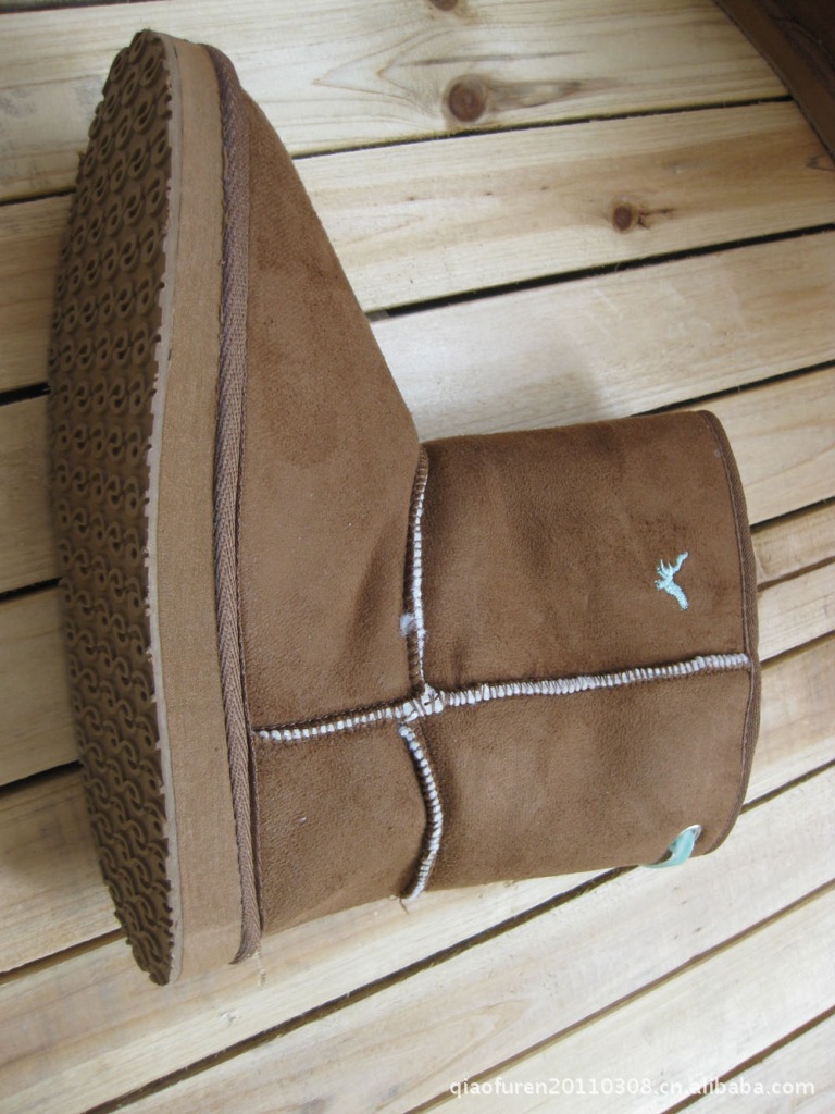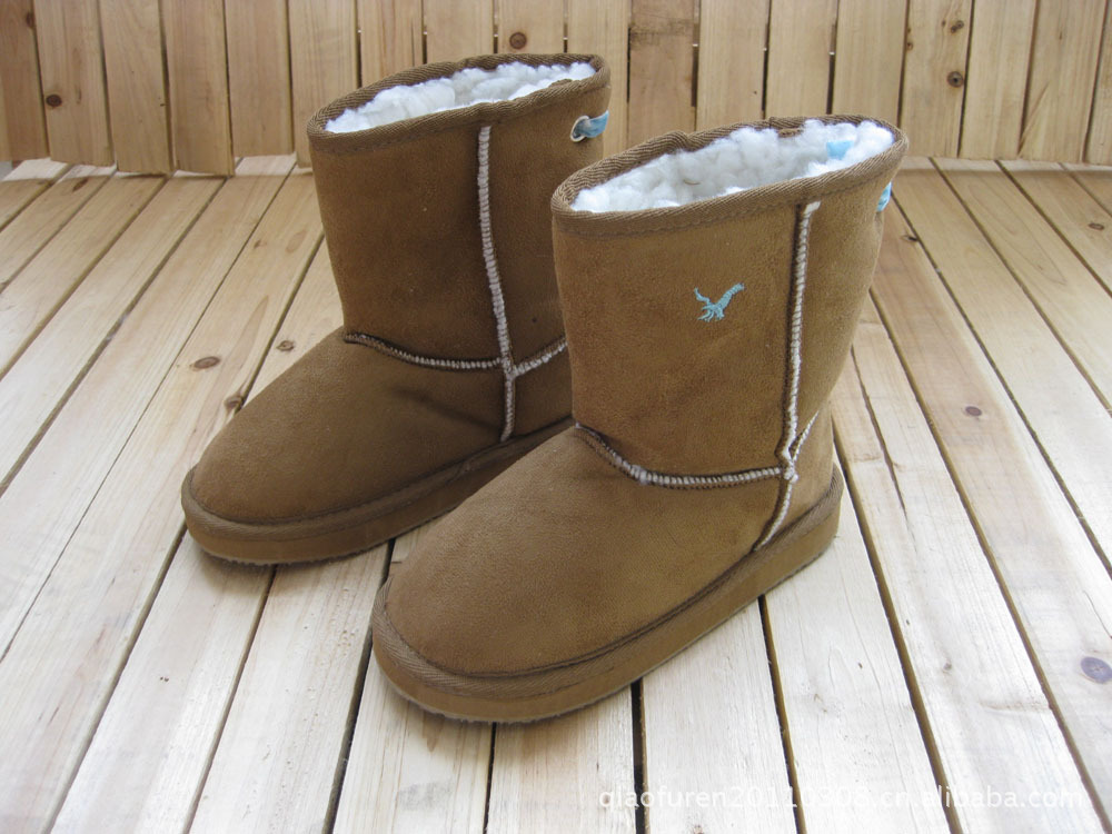 時(shí)尚 駝色 麂皮絨繡老鷹雪地童靴