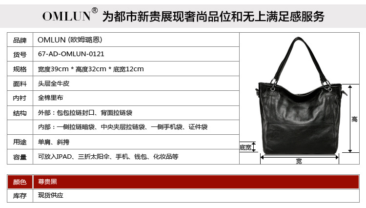 歐姆璐恩OMLUN 領(lǐng)域空靈 2013韓版百搭全真牛皮單肩斜挎女包