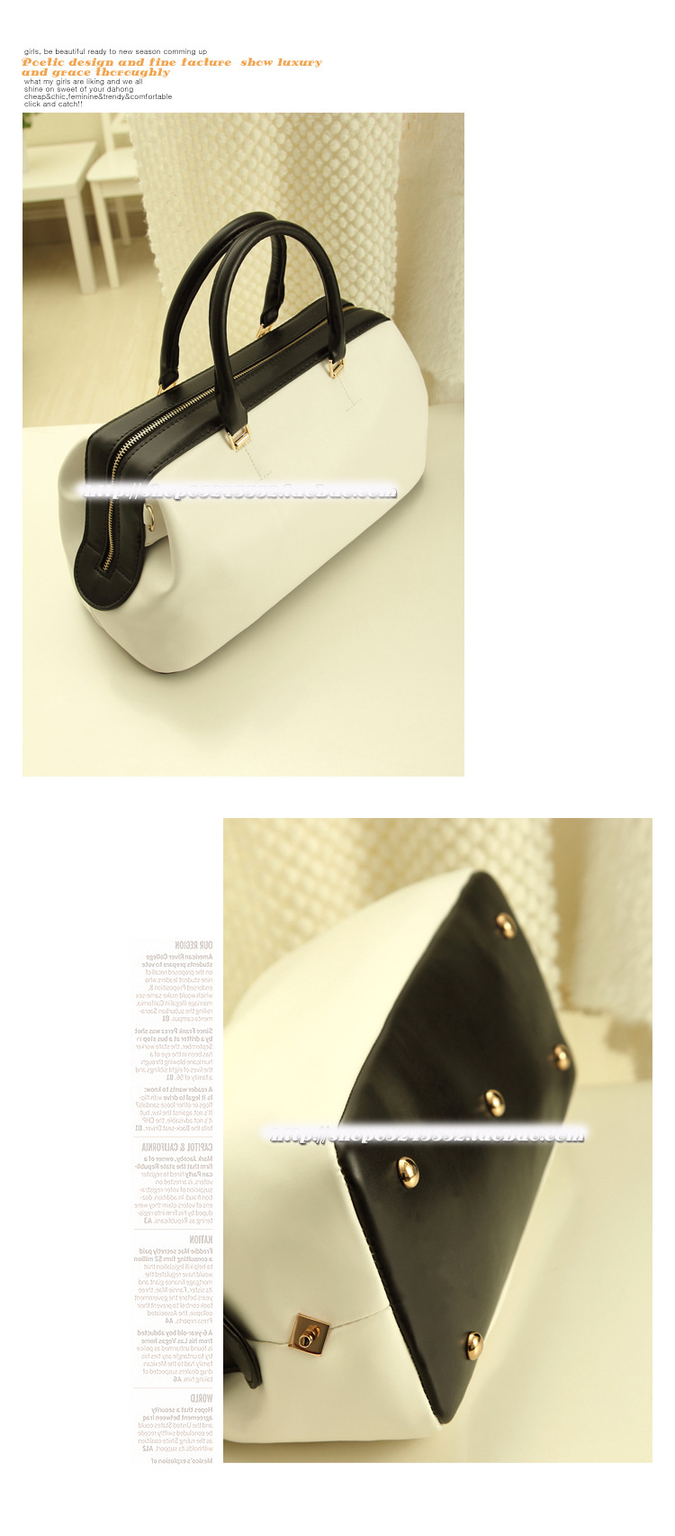 很有型哦。包包是光面的,底部有5個鉚釘,