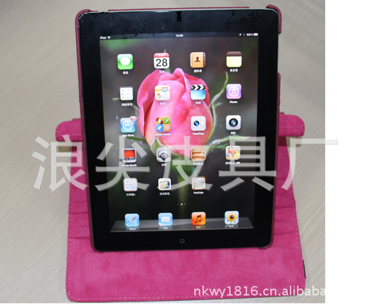 iPad3/4荔枝紋旋轉360度皮套 帶休眠功能