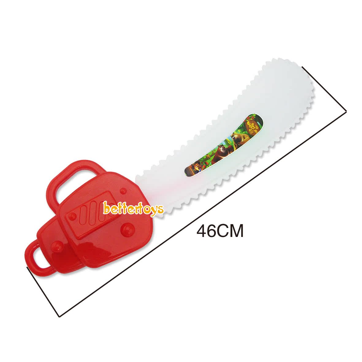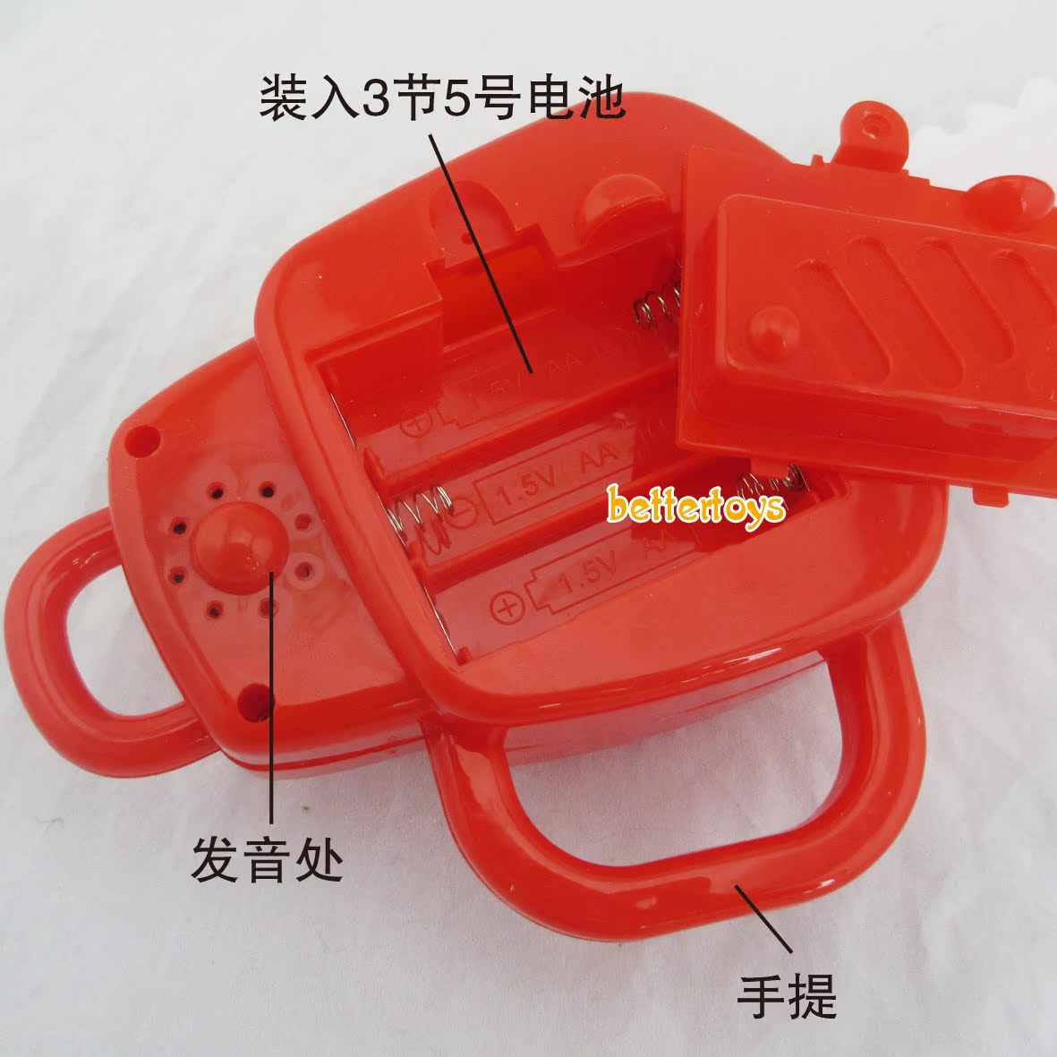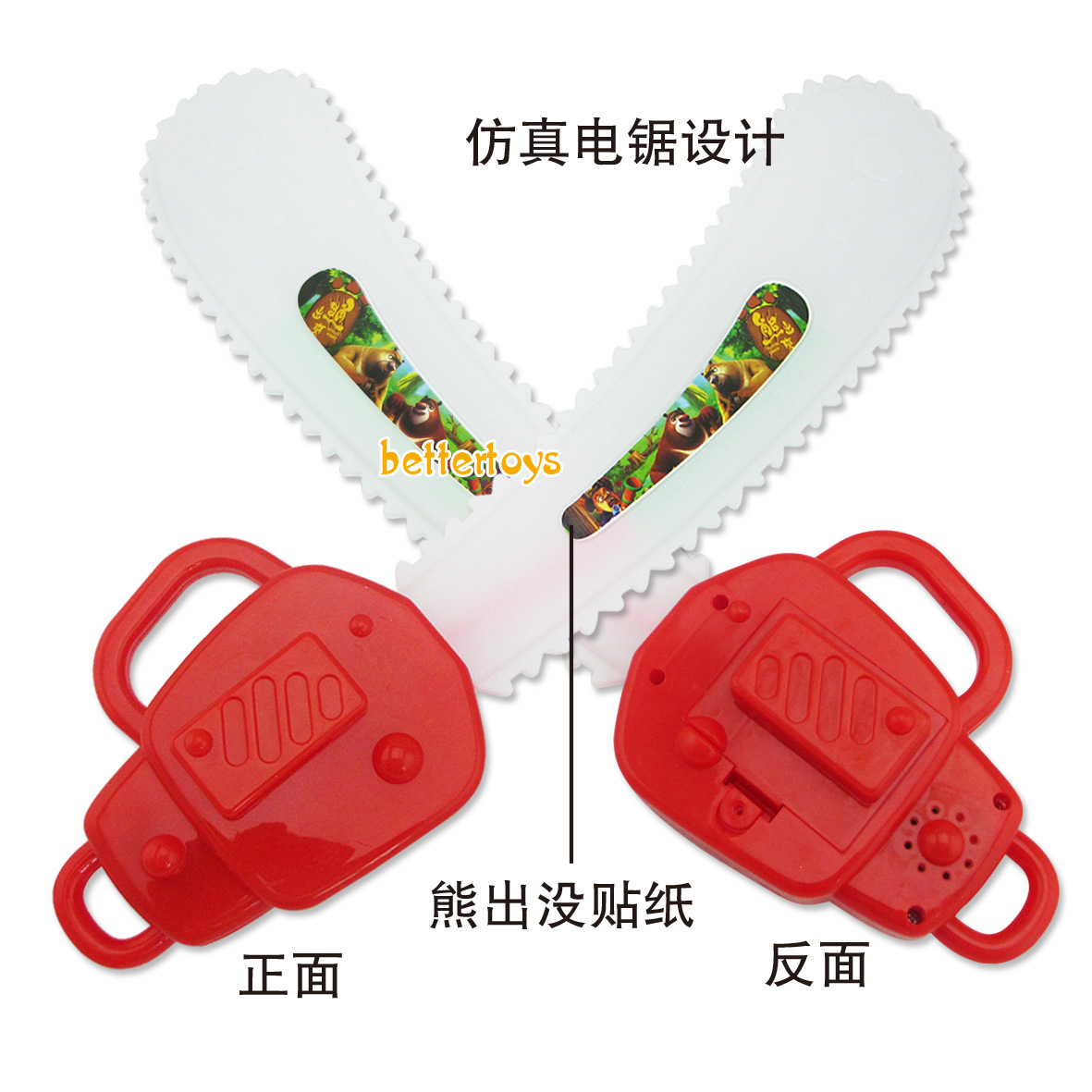 產(chǎn)品介紹:在電鋸的手柄處裝上3個(gè)5號(hào)電池 ,打開一個(gè)小小的黑色的開關(guān),電鋸就會(huì)發(fā)出熊出沒的聲音(光頭強(qiáng),熊大,站住,熊二,不許動(dòng)),且?guī)в袩艄獾?,是一款新款且熱賣中的產(chǎn)品)