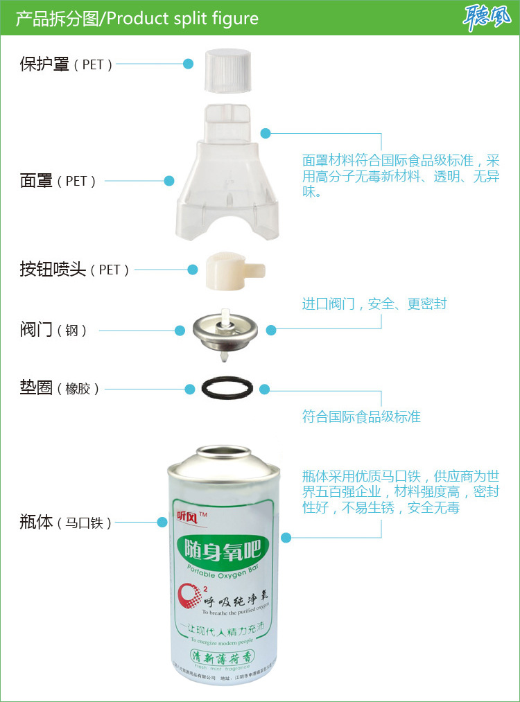 聽風(fēng)牌氧氣罐,也叫“隨身氧吧”、“便攜式吸氧器”、“小型罐裝氧氣”,分為多種水果香型。具有含氧量高、體積小、攜帶方便、使用方便的特點(diǎn)是一種新型的綠色保[jian]用品,適用于:體育運(yùn)動(dòng)、腦力透支、工作高壓、休閑旅游等領(lǐng)域,具有迅速緩解疲勞、提神醒腦、提高工作學(xué)習(xí)效率等功效!是學(xué)生、白領(lǐng)、運(yùn)動(dòng)員、駕駛員和戶外運(yùn)動(dòng)者的隨身好伴侶!