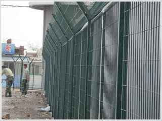 監(jiān)獄護(hù)欄網(wǎng)又稱作“Y型安全防御護(hù)網(wǎng)”,是由V型支架立柱,加強(qiáng)型焊接片網(wǎng),安全防盜連接件和熱鍍鋅刀片刺籠組成強(qiáng)度和安全防御性級別很高。近年來,被廣泛應(yīng)用在監(jiān)獄,軍事基地等高安全場所。注:如果在監(jiān)獄護(hù)欄網(wǎng)頂部加裝刀片刺絲、刀片刺繩后又很好的增強(qiáng)了安全防護(hù)性能。采用電鍍、熱鍍、噴塑、浸塑等防腐形式,具有很好的抗老化、抗曬、耐候等特點(diǎn)。其產(chǎn)品造型美觀、花色多樣,既起到圍欄作用,又起到美化作用。由于具有安全性高、防攀爬能力好,網(wǎng)片連接方式采用特制SBS緊扣件,有效防止人為的破壞性拆卸,橫向四道折彎加強(qiáng)筋,使網(wǎng)面強(qiáng)度顯著增加。 材質(zhì):優(yōu)質(zhì)低碳鋼絲。 規(guī)格:采用5.0mm高強(qiáng)度低碳鋼絲焊接。 網(wǎng)孔:50mmX100mm,50mmX200mm。 網(wǎng)片中帶有V型加強(qiáng)筋,可大大增強(qiáng)圍網(wǎng)的抗沖擊力。 立柱為60X60的矩形鋼,頂端焊有V型之架?;蛘卟捎?0mmX100mm的掛式連接立柱。產(chǎn)品均為熱鍍鋅后采用高質(zhì)量的聚酯粉末靜電噴涂,采用國際流行的RAL顏色。 編織方法:編制焊接而成。 連接方式:主要使用M卡,抱卡連接。 表面處理:電鍍、熱鍍、噴塑、浸塑。 優(yōu)點(diǎn):1. 具有美觀、實(shí)用、方便運(yùn)輸和安裝的特點(diǎn)。 2. 要以在在安裝時(shí)地形適應(yīng)地形,與立柱連接位隨地面起伏可上下調(diào)整; 3. 在監(jiān)獄護(hù)欄網(wǎng)的橫向加裝四道折彎加強(qiáng)筋,在整體成本增加不多的同時(shí),使網(wǎng)面強(qiáng)度和美感顯著增加,是目前國內(nèi)外之一。 主要用途:監(jiān)獄、機(jī)場封閉 、私人地域、軍事重地、 場區(qū)圍網(wǎng)、 開發(fā)區(qū)隔離網(wǎng)使用. 制作工藝:預(yù)直絲、裁剪、預(yù)彎、焊接、檢驗(yàn)、置框、破壞性實(shí)驗(yàn)、美化(PE、PVC、熱浸)、包裝、入庫.