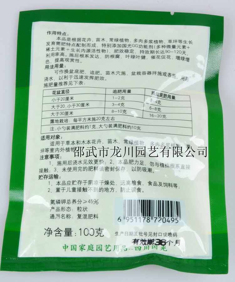 本品是根據(jù)花卉、苗木、常綠植物、多肉多漿植物、草坪等生長發(fā)育需肥特點(diǎn)配制而成,特別添加國光GG功能劑(多種微量元素、稀土元素、生長內(nèi)源活性物),肥效穩(wěn)定,持效期長達(dá)90-120天,利用率高。施肥后根系發(fā)達(dá),防根腐、葉綠葉健,催花促花,增綠增色,提高觀賞性。