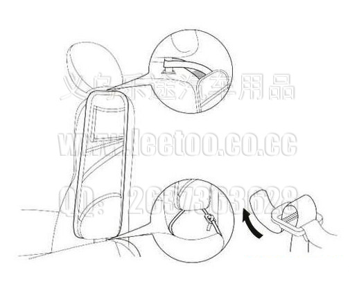產(chǎn)品上端帶有可調(diào)節(jié)松緊的可撕拉魔術(shù)布貼,固定在頭枕一頭與座椅結(jié)合處即可,下端自備一根棉繩,系在座椅底合適位置即可。