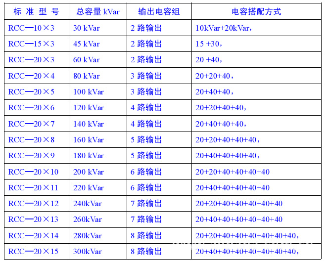 RCC系列選型表: