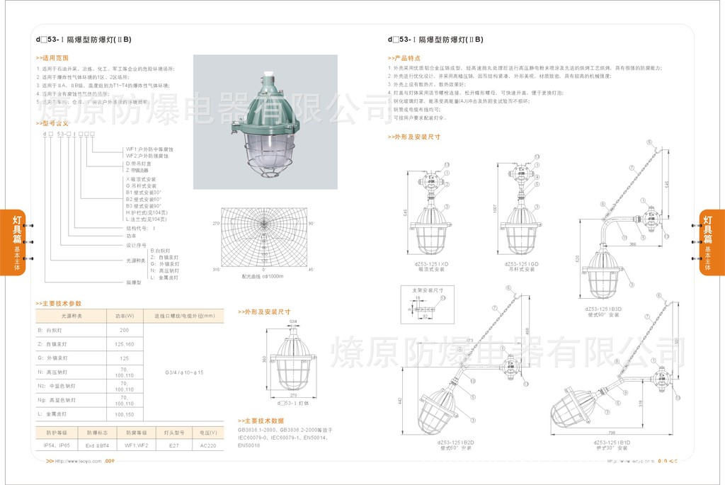 廠家供應(yīng)燎原防爆燈具dB53(G)-200I/125系列、dB53-200II/125系列 dB54-250系列防爆燈
