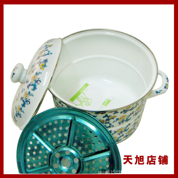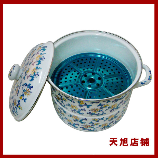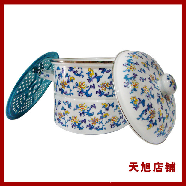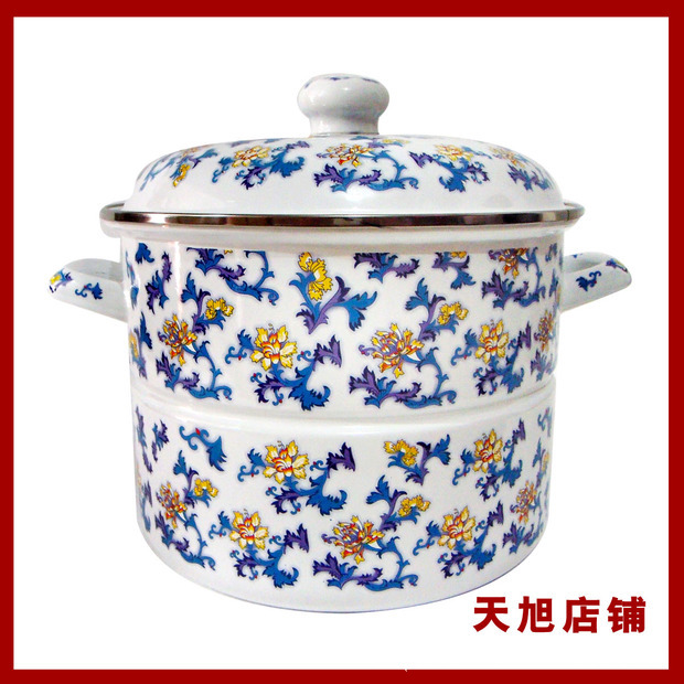 原單出口搪瓷鍋/加厚蒸鍋/燉鍋/奶鍋/煲湯鍋/26cm青花藍(lán)