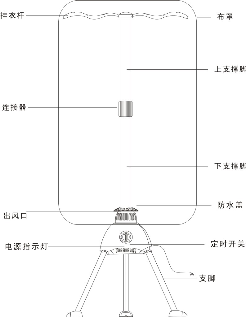 支架材質(zhì):鋁合金 干衣機用途:干衣、取暖