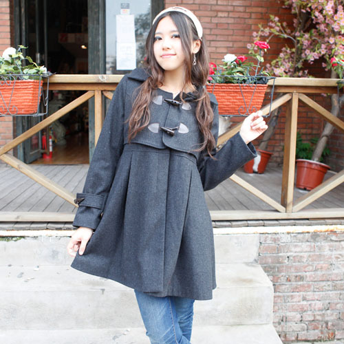 2014達(dá)娃新款牛角扣大衣 修身保暖毛呢 中長款呢子女秋冬裝風(fēng)衣