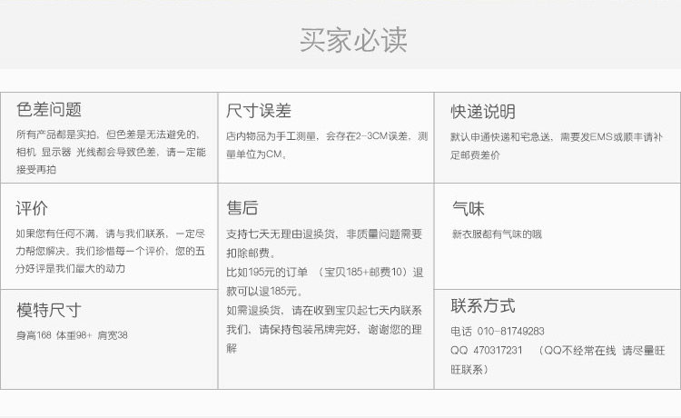 尺碼裙長(zhǎng)腰圍制作工藝臀圍M80cm松緊腰 平鋪1尺9拉伸至3尺2片裙完美裁剪無(wú)縫拼接無(wú)限制L90cm松緊腰 平鋪1尺9拉伸至3尺2片裙完美裁剪無(wú)縫拼接無(wú)限制松緊腰 只區(qū)分裙長(zhǎng)材質(zhì)外裙材質(zhì):毛呢 內(nèi)襯材質(zhì):聚酯實(shí)物拍攝實(shí)物拍攝,色差不可避免,光線亮一些;暗一些;拍出的裙子顏色以及明暗度都會(huì)有差別。一般室內(nèi)看就會(huì)暗些,室外陽(yáng)光下就亮一些洗滌方式推薦干洗。如水洗請(qǐng)避免使用甩干,會(huì)比較傷面料。毛呢面料如水洗會(huì)脫浮色是正?,F(xiàn)象快遞快遞默認(rèn)申通和宅急送其他說(shuō)明很多親希望客服幫忙參考尺碼,因每個(gè)人情況不同,我們只能根據(jù)之前買家的購(gòu)買記錄為大家推薦。我們提供的意見僅供您參考,終選擇尺碼還以您的決定為準(zhǔn)。