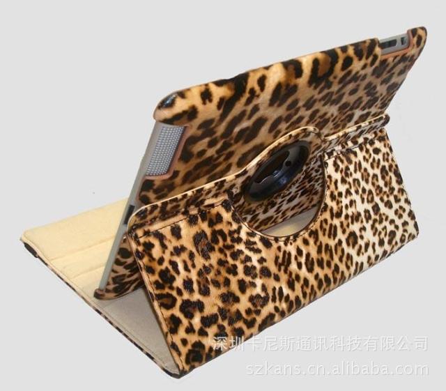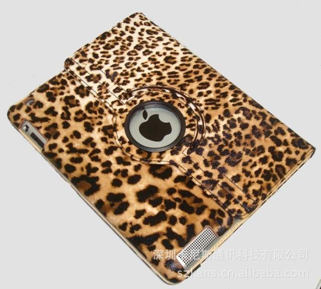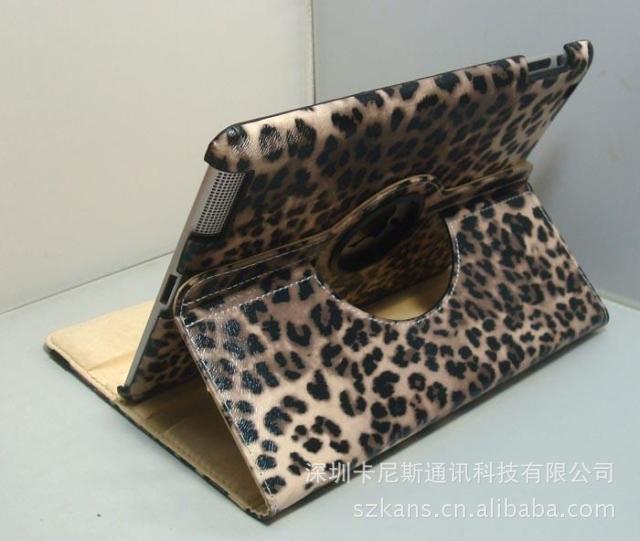 新品 IPAD2 IPAD3 豹紋保護(hù)套 皮套 360旋轉(zhuǎn)皮套 ipad3支架