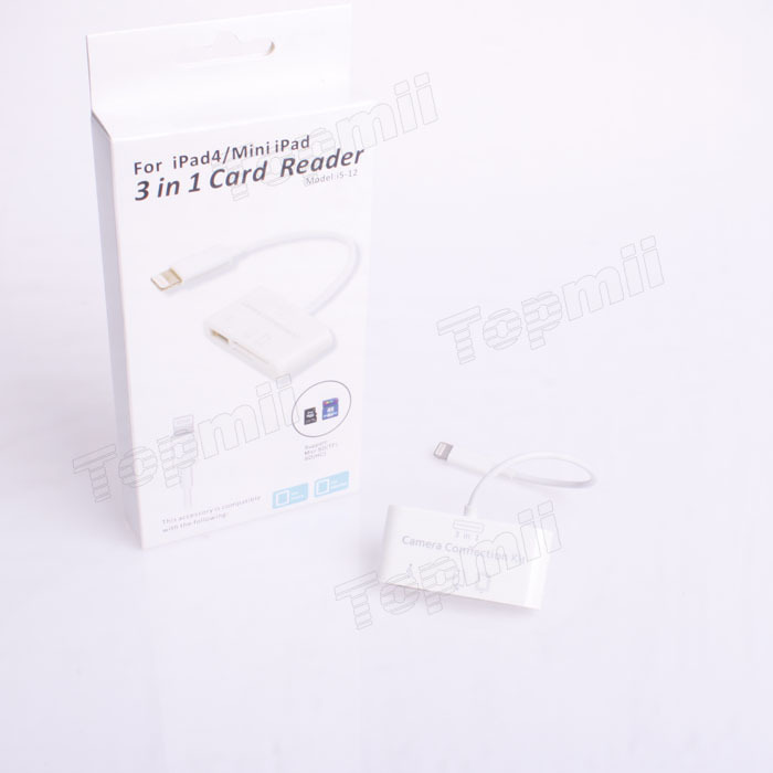 蘋果ipad4讀卡器 迷你IPAD MINI lightning 3合1讀卡器 相機(jī)套件