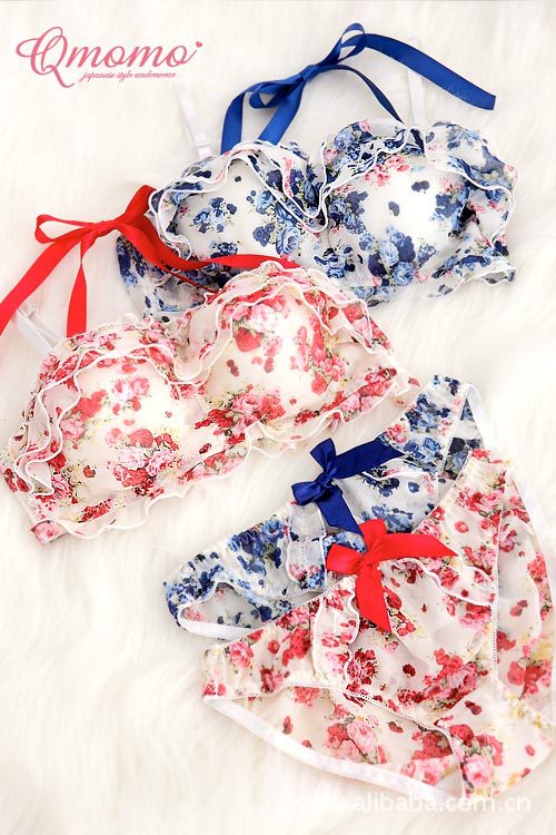 V2071日單外貿 防走光文胸套裝 碎花抹胸 甜美型女士內衣批發(fā) B杯