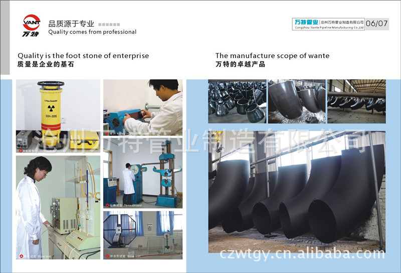 滄州萬特管業(yè)制造有限公司,是生產碳鋼管件、鋼管、不銹鋼管件,合金鋼管件的專業(yè)企業(yè)。