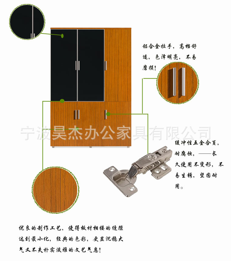 5、五金配件:采用高檔防腐、防銹處理五金配件,優(yōu)質(zhì)無聲導(dǎo)軌、門鉸、拉手等。