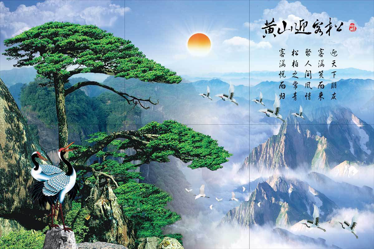 特價 商用 背景墻磚 藝術瓷磚 瓷磚背景墻 彩雕背景畫 黃山迎客單價:40.00