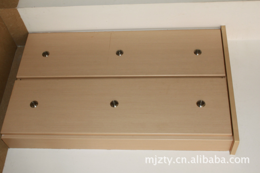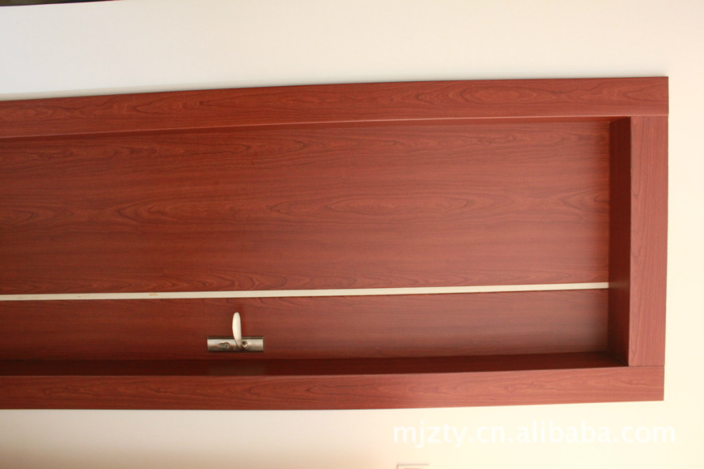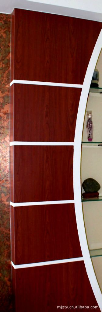 在房屋裝修中,由于本產(chǎn)品裝飾面板具有折角,對于多個角、多個面的所飾物可以連貫一體的直接貼飾在其表面,使被貼表面具有整體性而更美觀,一貼即完成,使木飾的表面貼飾工效提高,更簡捷,不必油漆還避免了污染。