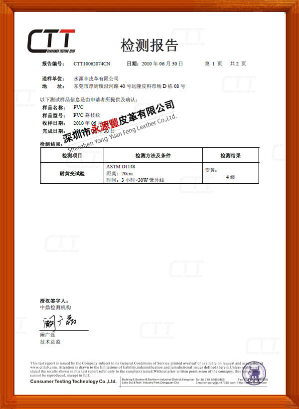 答:我們產(chǎn)品種類繁多、會每月不定期開發(fā)新款式,我們能按您所提供的樣板和要求做到:物理、化學、紋路、幅寬、厚度、手感、底布、表面處理、環(huán)保低毒等各方面要求。