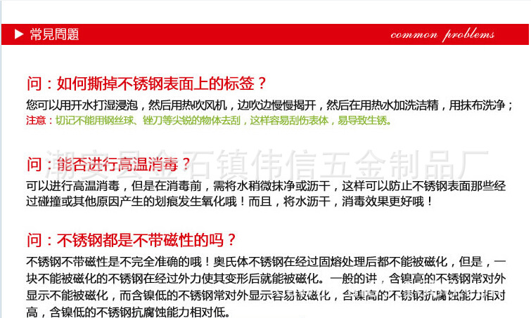 潮安縣金石鎮(zhèn)偉信五金制品廠座落于之美稱美麗潮州市潮安縣“不銹鋼王國”之鄉(xiāng),是一家專業(yè)生產經營"偉信"牌不銹鋼湯盆、不銹鋼圓盤、不銹鋼面盆、無磁湯盆、加深圓盤、無磁反邊面盆、帶磁反邊面盆的廠家。品種、規(guī)格齊全,為客戶提供不銹鋼之鄉(xiāng)產品的“一站式”優(yōu)質服務。
