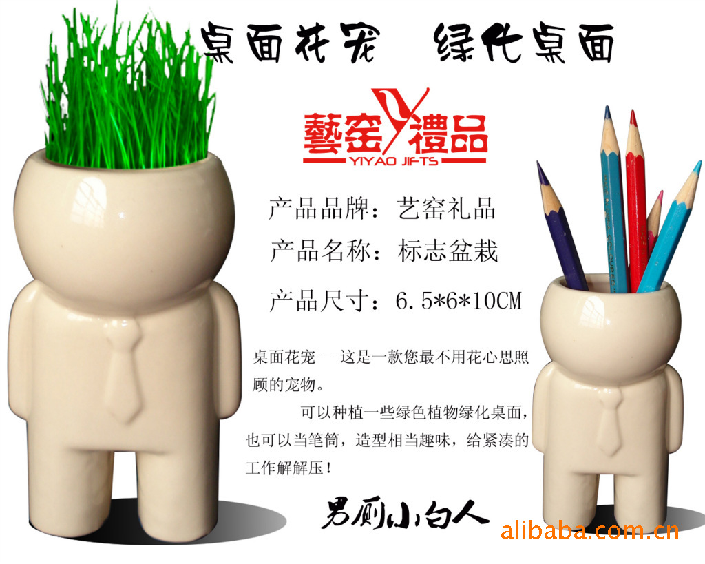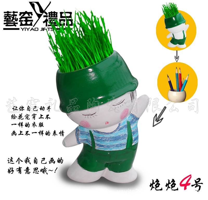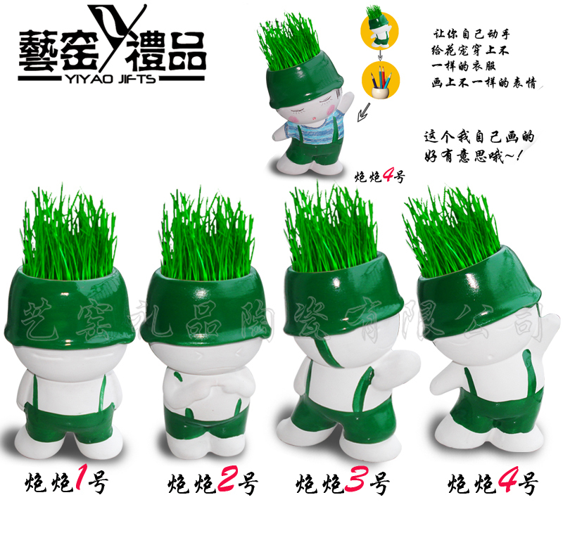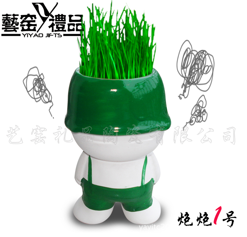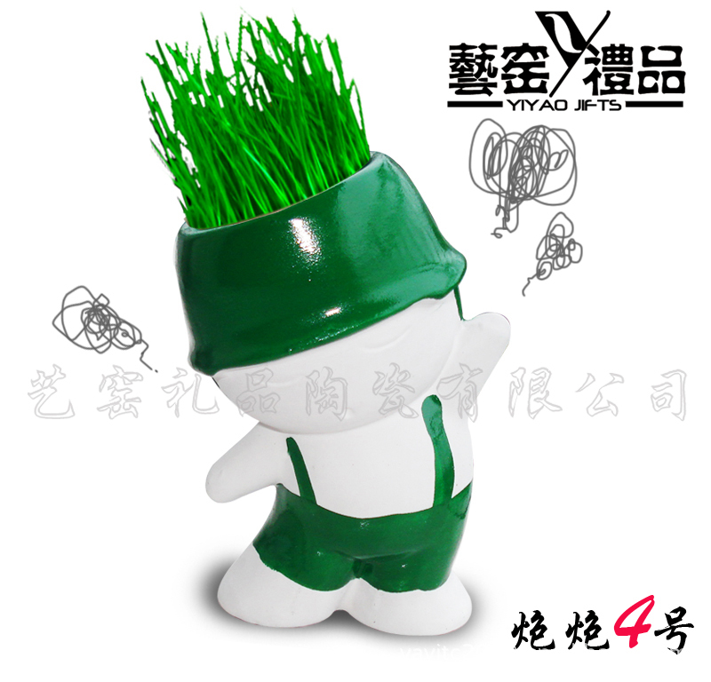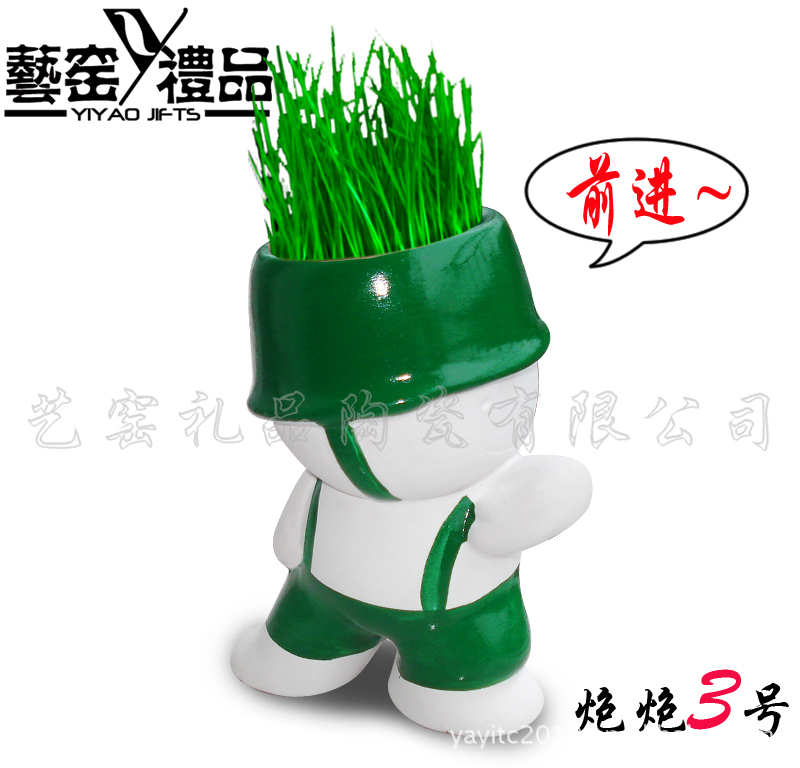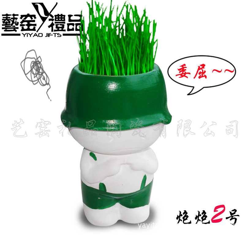 德化陶瓷工藝 創(chuàng)意新奇產(chǎn)品 桌面擺設(shè)新款青草種植兵哥 小白人
