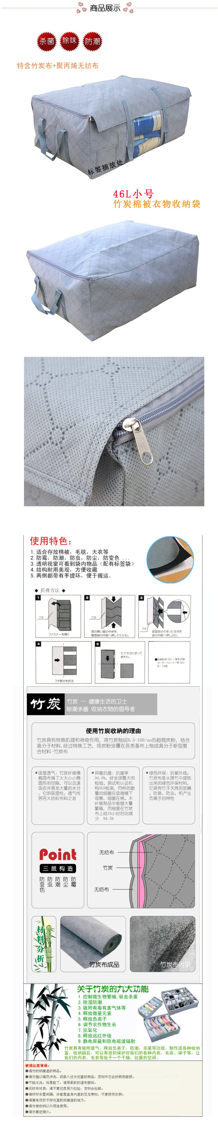 商品名稱:竹炭棉被衣物收納箱/儲(chǔ)物箱
