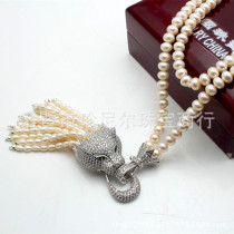 原創(chuàng)手工天然淡水珍珠項(xiàng)鏈長款925微鑲豹頭項(xiàng)鏈 秋冬毛衣鏈388.00