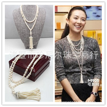 奢華明星款 珍珠圓珠毛衣鏈 天然珍珠項(xiàng)鏈 AAA珍珠毛衣鏈478.00