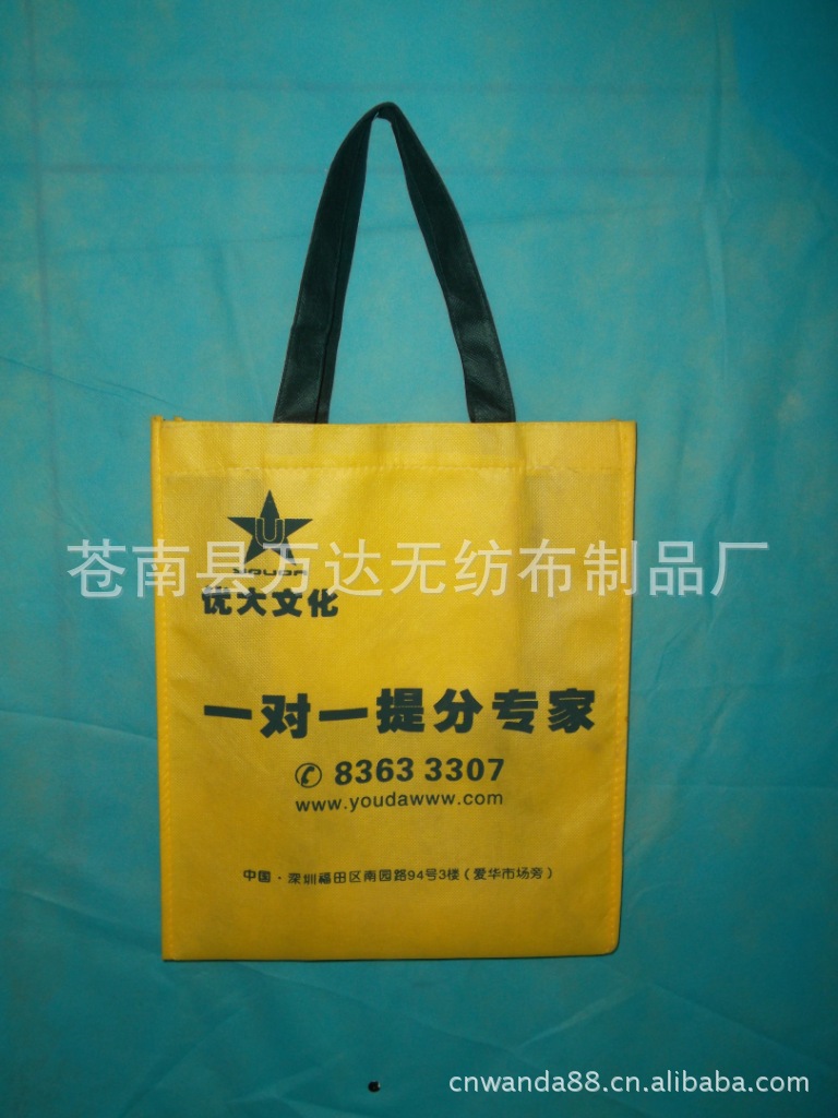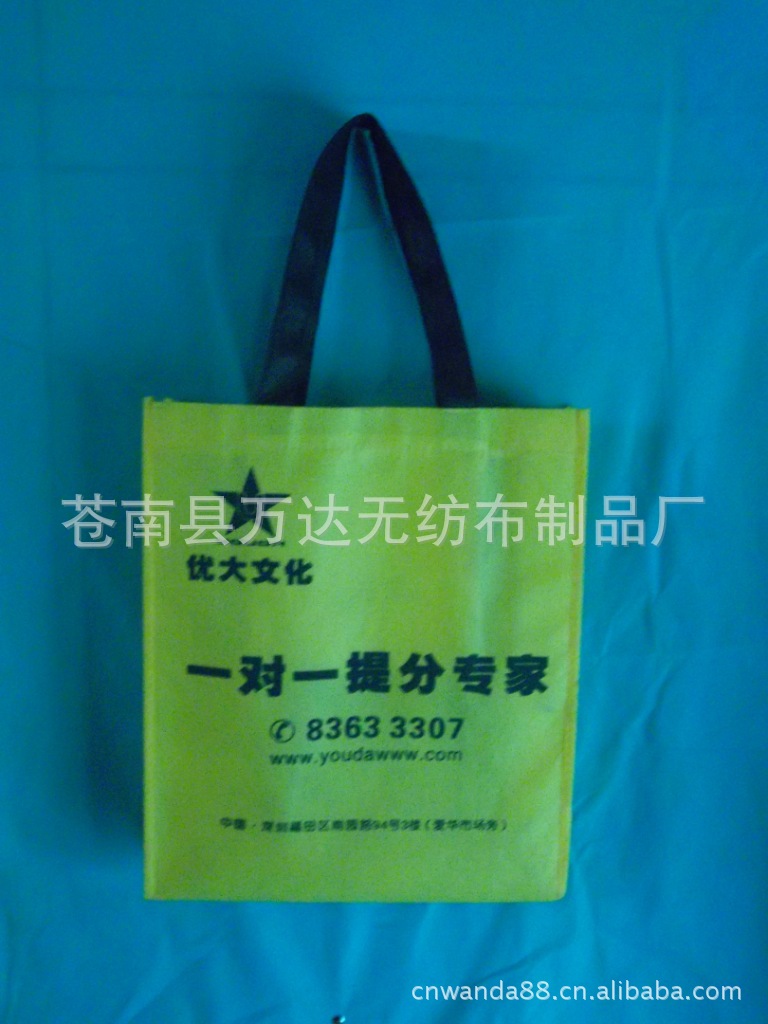 萬達無紡布制品廠專業(yè)設計制作各種:無紡布環(huán)保袋、無紡布腹膜袋、編織腹膜袋,廣告袋、禮品袋、棉布袋、帆布袋、麻布袋、PET麗新布袋、牛津布袋、滌綸袋、絨布袋、沙網(wǎng)袋、旅行袋、廣告圍裙、保溫袋、冰袋、紙袋、西裝套 各種高難度袋制品|。本廠生產(chǎn)的產(chǎn)品具有環(huán)保、透氣、柔韌、干爽、無毒、無味,無刺激性、色彩豐富等特點。無紡布袋.品種齊全.產(chǎn)品廣泛適用于各企事業(yè)單位.廣告宣傳、產(chǎn)品包裝、產(chǎn)品展銷等廠家直銷,價格優(yōu)惠,交貨及時,并按照客戶的要求制做。因為材料、尺寸、印刷等不一致,價格視具體的商品來定,不以一口價為準。