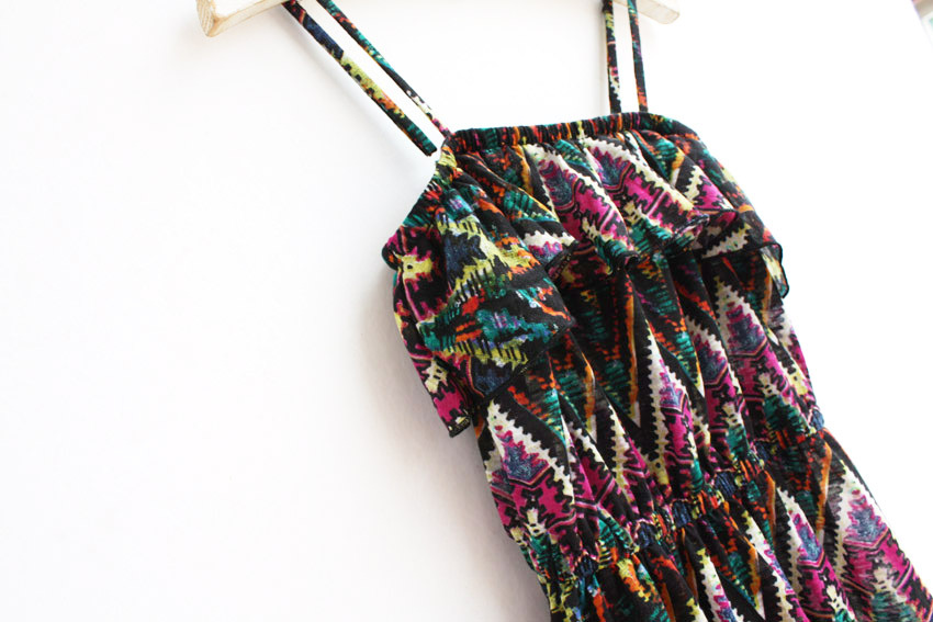 Q0013 田園復(fù)古風(fēng) 波西米亞 前短后長 吊帶連衣裙 中長款 兩色
