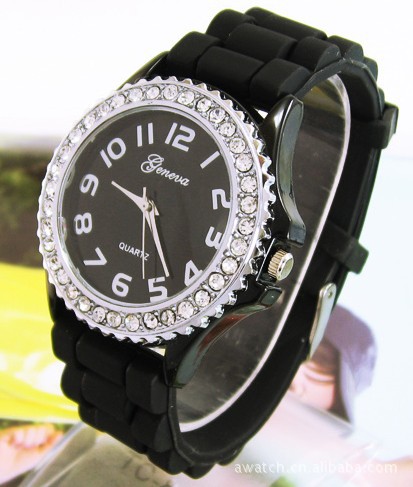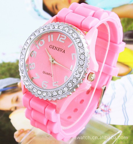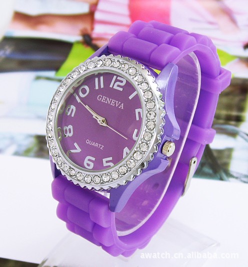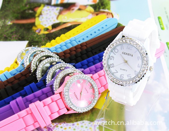 批發(fā)GENEVA日內(nèi)瓦鑲鉆硅膠果凍表時(shí)尚個(gè)性合金表