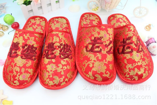 意為"白頭偕老"。本鞋采用大紅色,而鞋子上又繡有老公老婆字樣,更加突