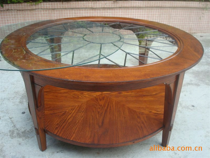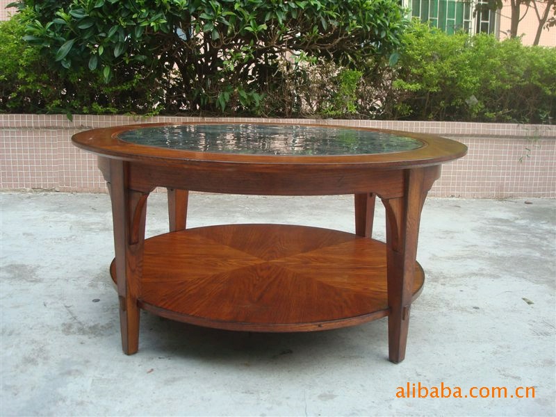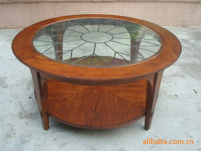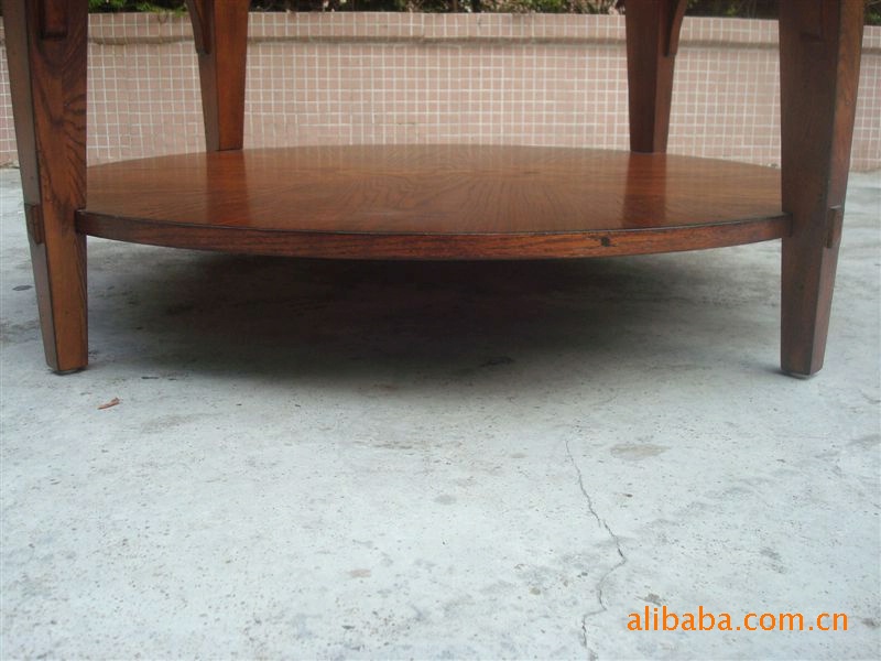傳統(tǒng)美式田園家具柞木紅橡木圓咖啡桌,矮幾