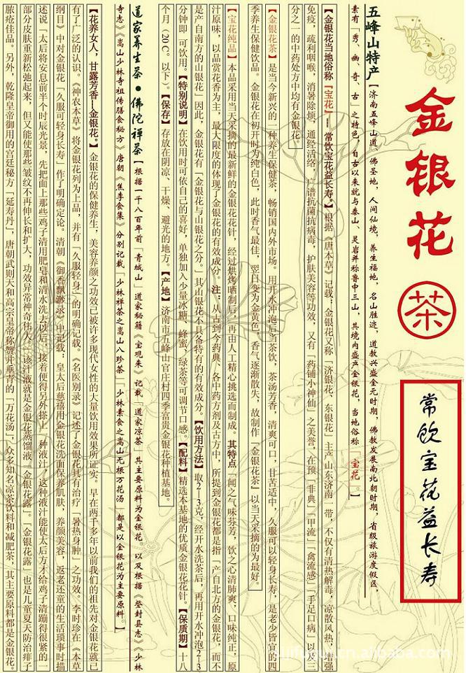 【濟南五峰山道、佛圣地,人間仙境,養(yǎng)生福地,其境內(nèi)盛產(chǎn)金銀花,當(dāng)?shù)厮追Q“寶花”—— 常飲寶花益長壽?!?/p>