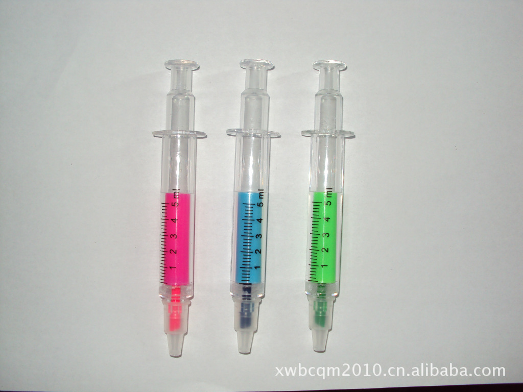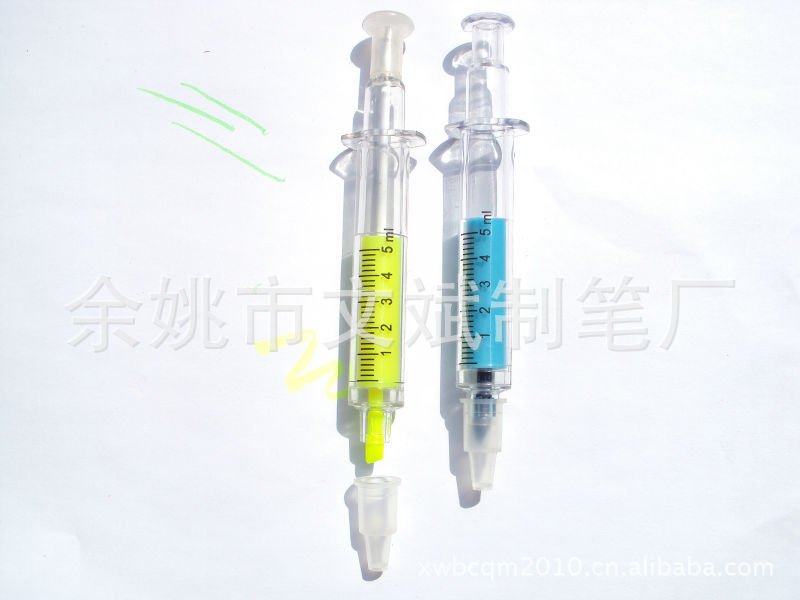 針筒熒光筆,一邊熒光筆,一邊圓珠筆,帶刻度!有需要請聯(lián)系!也可印刷客戶LOGO!