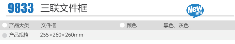 產(chǎn)品信息得力9833文件框,物美價(jià)廉,性價(jià)比高;款式經(jīng)典,使用方便,穩(wěn)固不晃動(dòng)