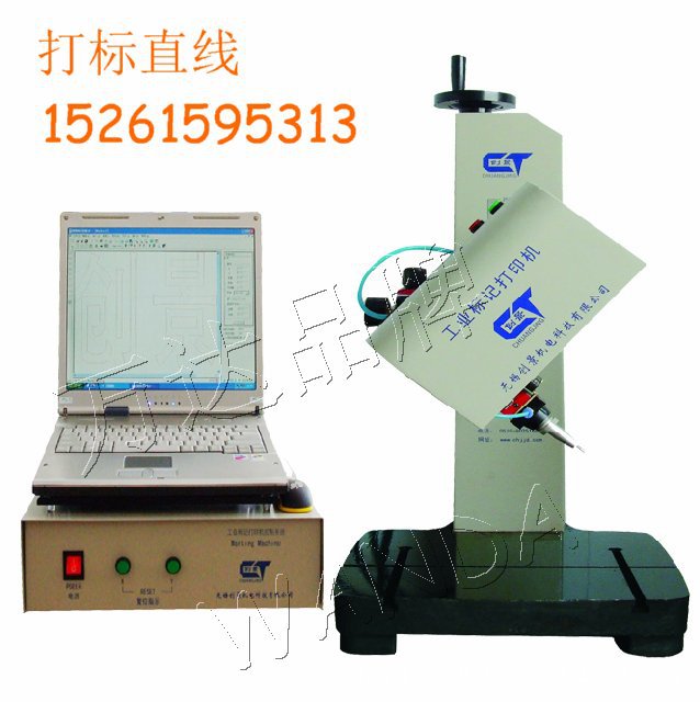 結(jié)合CHJ-AQ1(A)的原理增加了機(jī)頭旋轉(zhuǎn)工裝,打標(biāo)頭與立柱之間通過(guò)插銷裝置,方便打標(biāo)頭360度旋轉(zhuǎn)的切換;實(shí)現(xiàn)機(jī)頭對(duì)異形標(biāo)記工件的定位,保證工件和打標(biāo)針位置的一致性,完成標(biāo)記。主要技術(shù)指標(biāo):打標(biāo)范圍: 110x90 (150×120/