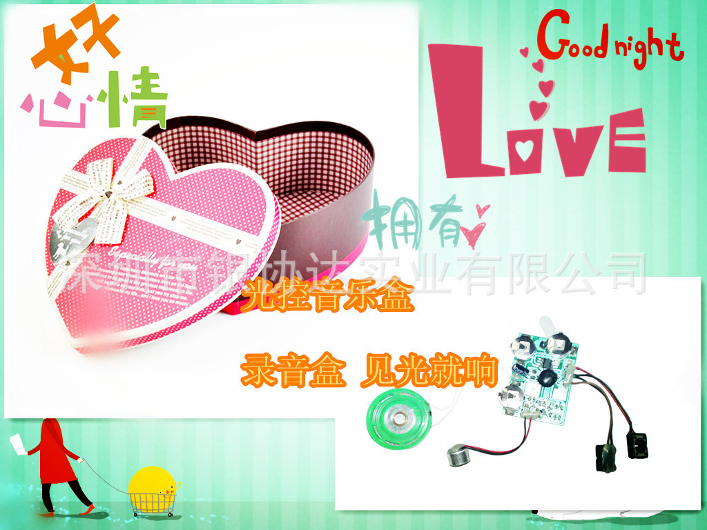 是專(zhuān)業(yè)開(kāi)發(fā)、生產(chǎn)、銷(xiāo)售(玩具電子配件,發(fā)聲發(fā)光玩具機(jī)芯,音樂(lè)閃燈用品機(jī)芯,IC,COB,PCBA)。