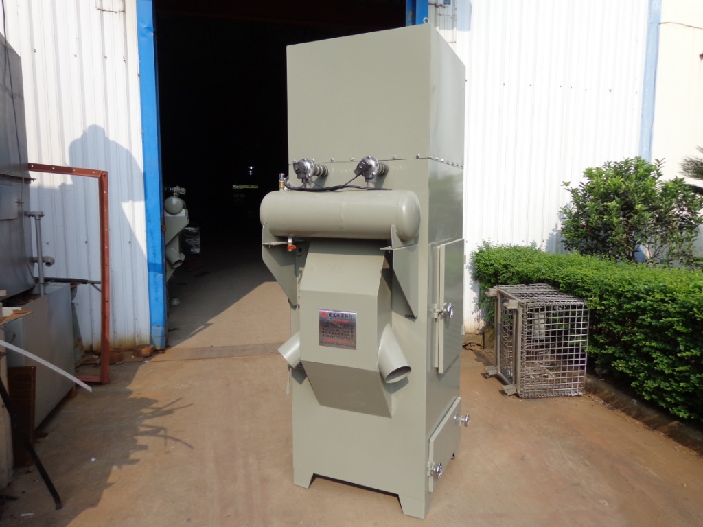 濾筒式除塵器,具有阻力小,過濾面積大,占地省等優(yōu)點(diǎn),將機(jī)組放置獨(dú)立的除塵間,配置連接軟管使吸塵罩與除塵器連接,接上電源,開啟風(fēng)機(jī),在風(fēng)機(jī)的吸引下,塵源經(jīng)吸塵罩~風(fēng)管~進(jìn)風(fēng)口進(jìn)入箱體預(yù)處理室,因氣流突然擴(kuò)張,流速驟然降低,大顆粒粉塵在其自重的作用下再空氣中分離而沉降,其余塵粒由于濾筒的篩濾,碰撞,鉤掛,靜電等作用,被滯留于濾芯外壁,凈化后的空氣由風(fēng)機(jī)經(jīng)出口排出。本機(jī)組濾芯采用高效濾材,凈化后的空氣可直接排放室內(nèi)循環(huán)使用,無通風(fēng)熱量(冷量)損失。并采用在線的清灰方式,清灰過程中無需停機(jī)。采用脈沖清灰,用戶需自備氣源即可。