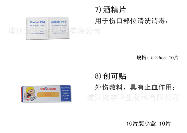 5 紗布片 5*5cm 8片/包----用于傷口處的包扎和止血;
