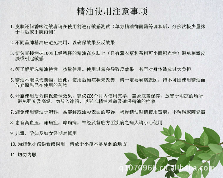 【使用方法】洗臉后,取適量相應(yīng)精油涂抹于臉部,按[mo]至完全吸收,使皮膚全面的吸收有效成分