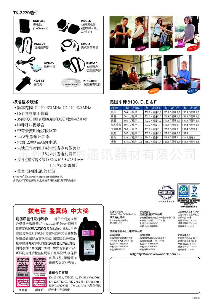 蘇州建伍對講機TK3230對講機及對講機電池